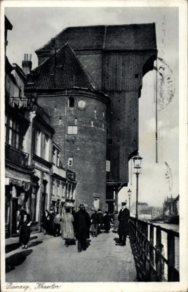 Ak Gdańsk Danzig, Kantor, Menschen auf der Straße, Architektur