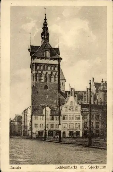 Ak Gdańsk Danzig, Kohlenmarkt mit Stockturm