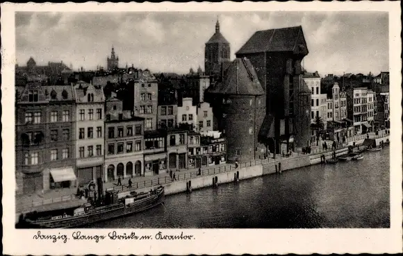 Ak Gdańsk Danzig, Krantor, Lange Brücke