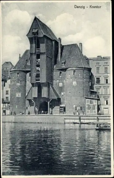 Ak Gdańsk Danzig, Krantor, historisches Gebäude, Wasseransicht