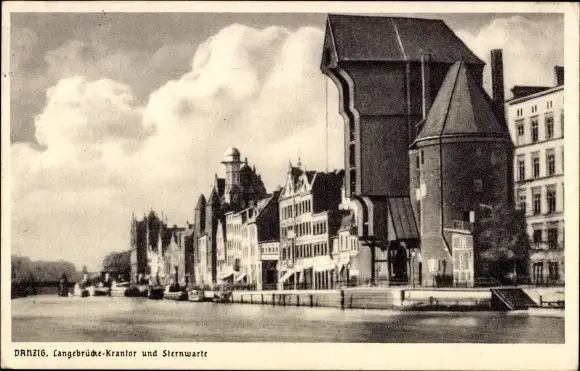 Ak Gdańsk Danzig, Langebrücke mit Krantor und Sternwarte