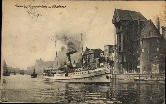 Ak Gdańsk Danzig, Langebrücke und Krahntor, Salondampfer Elsa