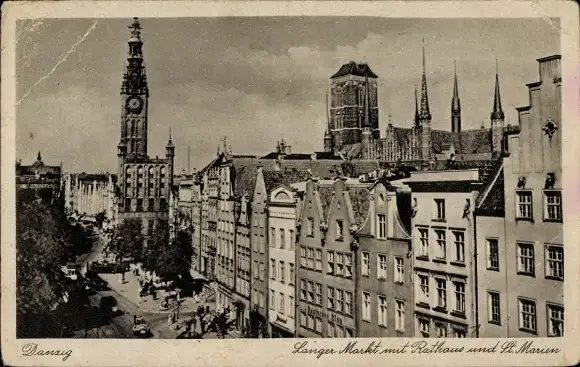 Ak Gdańsk Danzig, Langer Markt mit Rathaus und St. Marienkirche