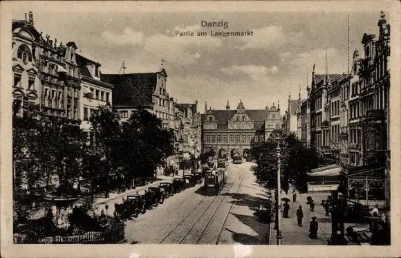Ak Gdańsk Danzig, Langermarkt, Straßenbahn