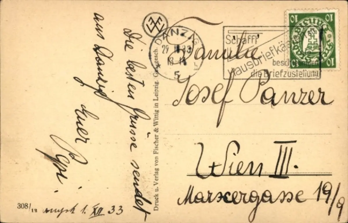 Zustand, siehe Scan, gelaufen, 1933 - ca 14 cm X 9 cm