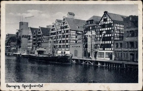 Ak Gdańsk Danzig, Partie an der Weichsel, Lastkahn