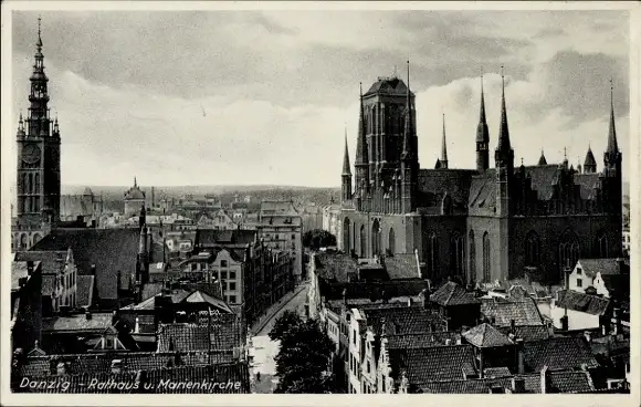 Ak Gdańsk Danzig, Rathaus, Marienkirche