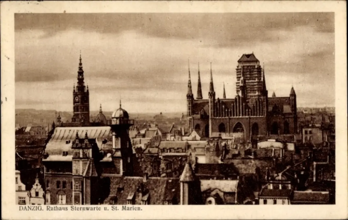 Ak Gdańsk Danzig, Rathaus, Sternwarte, St. Marien, Stadtansicht