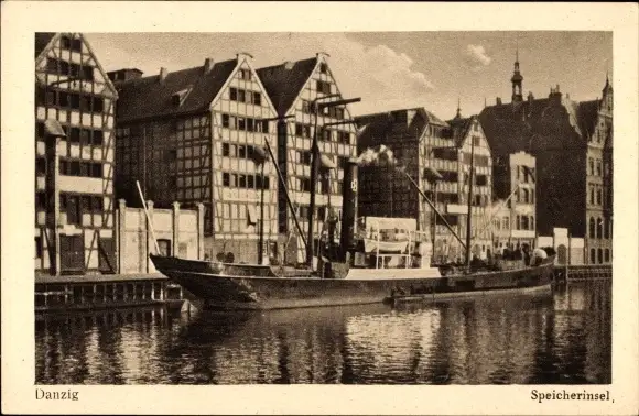Ak Gdańsk Danzig, Speicherinsel, Fachwerkhäuser