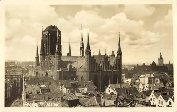 Ansichtskarte, Postkarte, Danzig, Gdańsk, Kirche, Stadtkirche, Gotteshaus