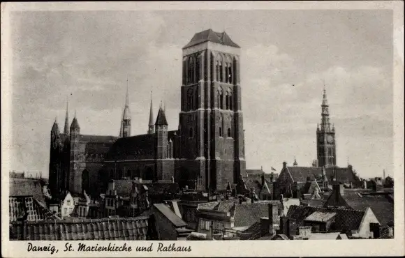 Ak Gdańsk Danzig, St. Marienkirche, Rathaus