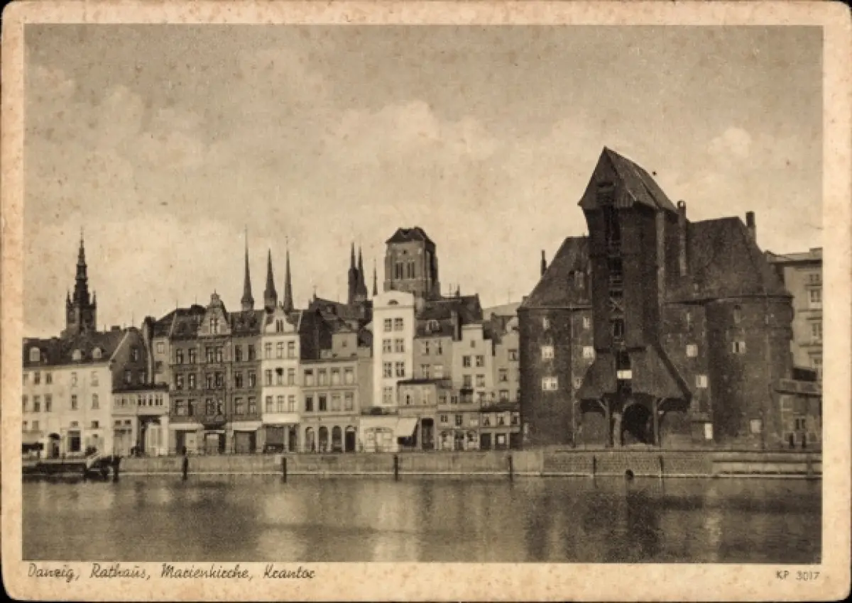 Ak Gdańsk Danzig, Stadtansicht Rathaus, Marienkirche, Hafen, Architektur