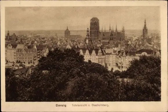 Ak Gdańsk Danzig, Totalansicht vom Bischofsberg