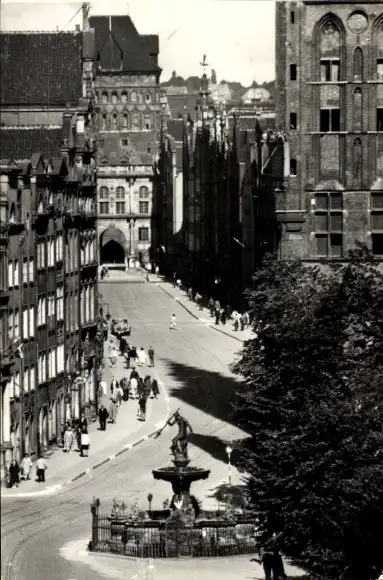 Ak Gdańsk Danzig, Ulica Dluga w kierunku Zlotej Bramy, Langgasse, Brunnen
