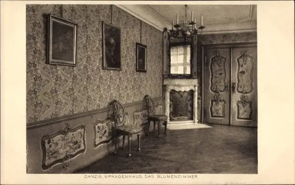 Ak Gdańsk Danzig, Uphagenhaus, das Blumenzimmer, Kamin