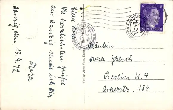 Zustand, siehe Scan, gelaufen, 1942 - ca 14 cm X 9 cm