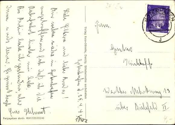 Zustand, siehe Scan, gelaufen, 1942 - ca 15 cm X 11 cm