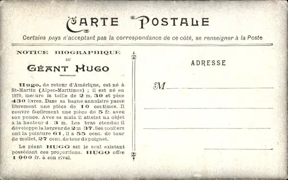 Ak Géant Hugo, Riese neben einem Liliputaner