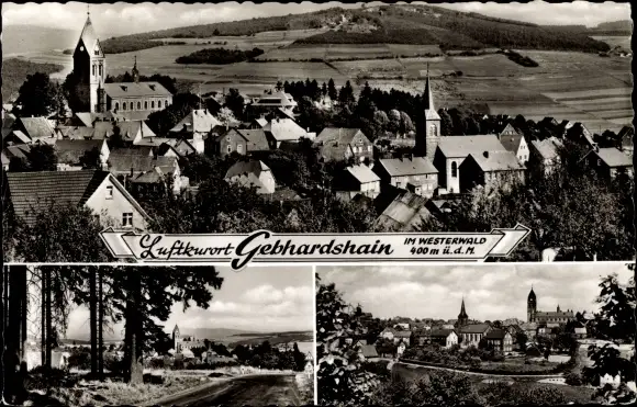 Ak Gebhardshain im Westerwald, Panorama, Kirche