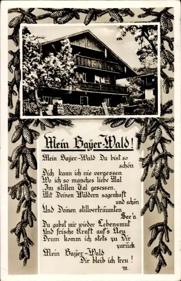 Ak Gedicht Mein Bayrischer Wald, Gasthaus, Tannenzapfen