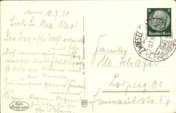 Zustand, siehe Scan, gelaufen, 1938 - ca 9 cm X 14 cm