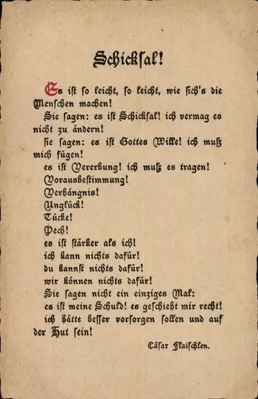 Ak Gedicht Schicksal, Es ist so leicht, so leicht...