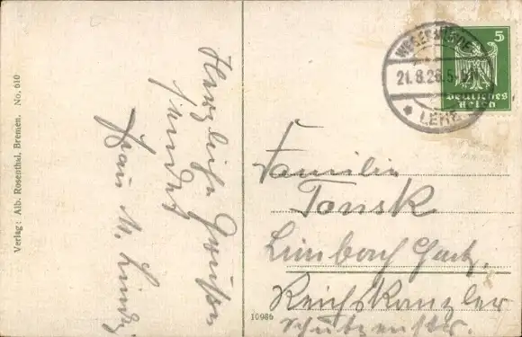 Zustand, siehe Scan, gelaufen, 1928 - ca 14 cm X 9 cm