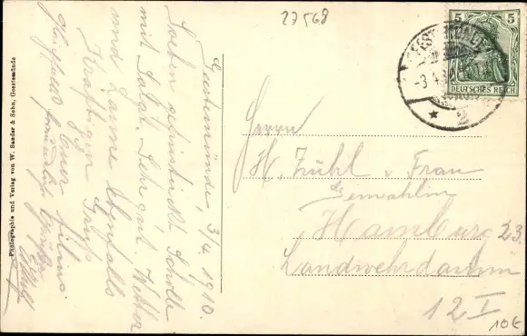 Zustand, siehe Scan, gelaufen, 1910 - ca 14 cm X 9 cm