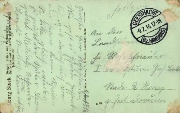 Zustand, siehe Scan, gelaufen, 1916 - ca 14 cm X 9 cm