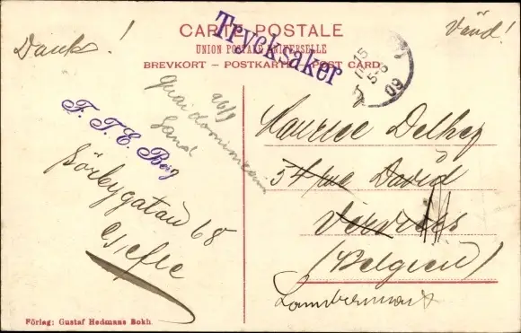 Zustand, siehe Scan, gelaufen, 1909 - ca 14 cm X 9 cm