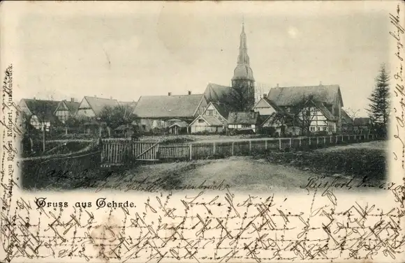 Ak Gehrde im Landkreis Osnabrück, Teilansicht mit Kirche