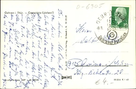 Ak Gehren Ilmenau in Thüringen, Gaststätte Edelweiß