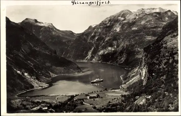 Ak Geirangerfjord Norwegen, Utsigt over Geirangerfjorden, Dampfschiff