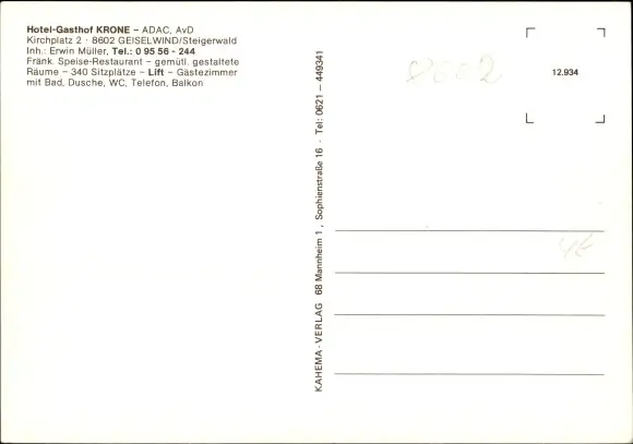 Ak Geiselwind Steigerwald, Hotel und Gasthof Krone, Kirchplatz 2