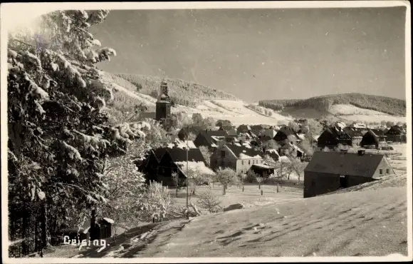 Ak Geising Altenberg im Erzgebirge, Panorama, Winteransicht, Kirchturm