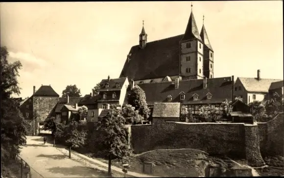 Ak Geithain in Sachsen, Kirche mit Stadtmauer und Tor