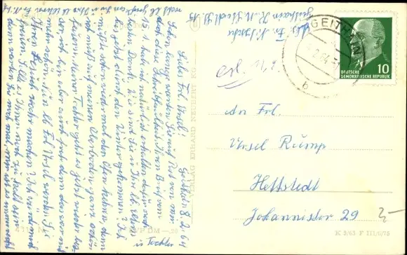 Zustand, siehe Scan, gelaufen, 1964 - ca 14 cm X 9 cm