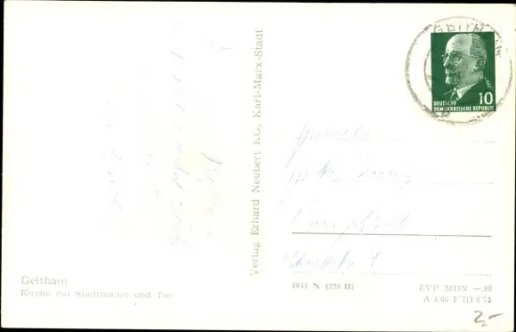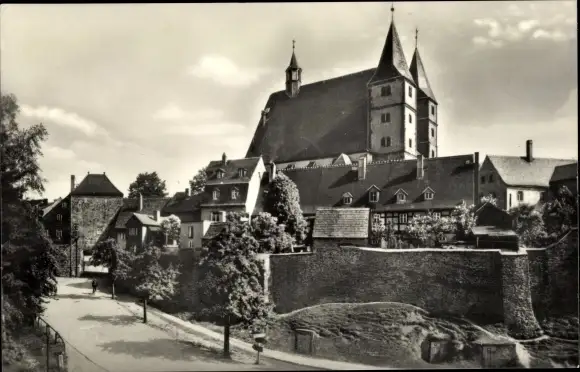 Ak Geithain in Sachsen, Kirche mit Stadtmauer und Tor