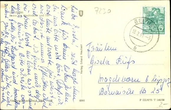 Ansichtskarte, Postkarte, Kirche, Stadtkirche, Gotteshaus, Sakralbau