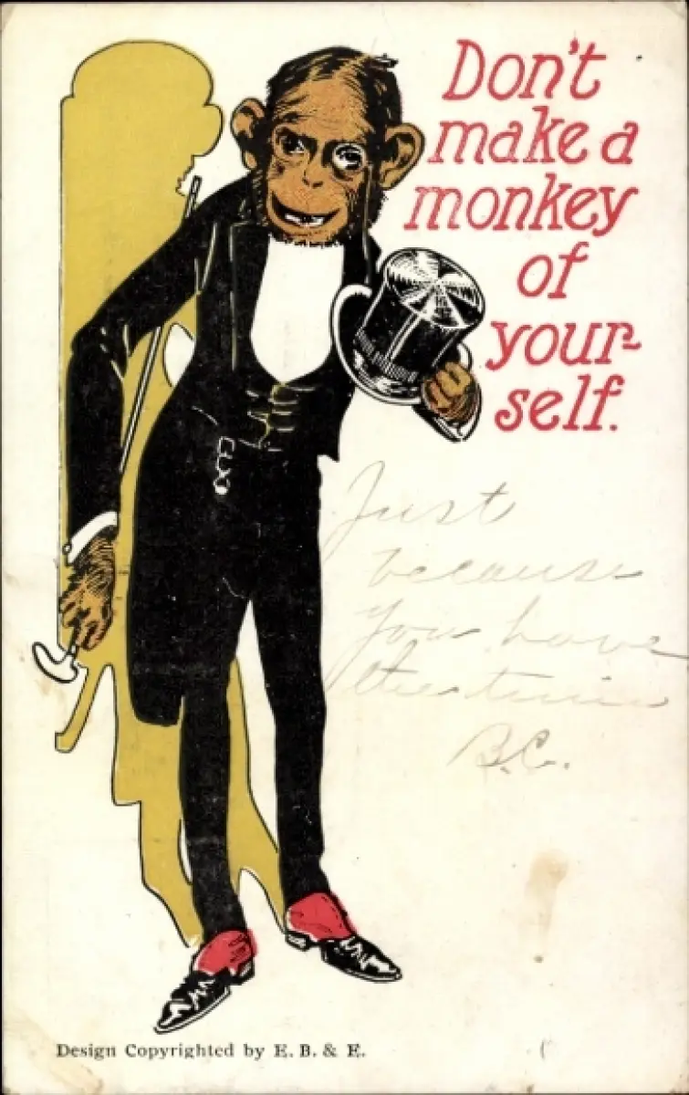 Ak Gekleideter Affe mit Zylinder, Gehstock