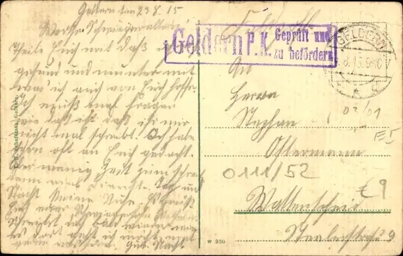 Zustand, siehe Scan, gelaufen, 1915 - ca 14 cm X 9 cm