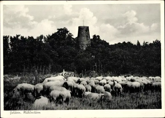 Ak Geldern am Niederrhein, Mühlenturm, Schafherde