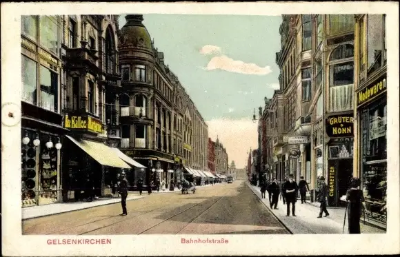 Ak Gelsenkirchen im Ruhrgebiet, Bahnhofstraße, Geschäfte