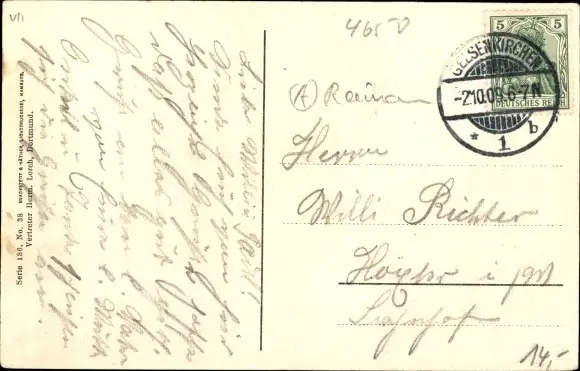 Zustand, siehe Scan, gelaufen, 1909 - ca 14 cm X 9 cm