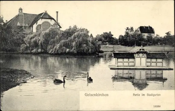 Ak Gelsenkirchen im Ruhrgebiet, Partie am Stadtgarten, Teich