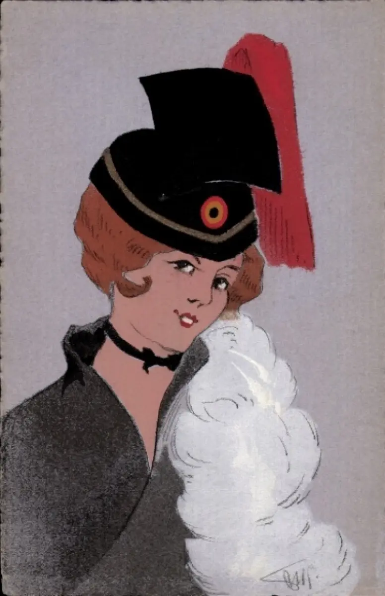 Ak Gemaltes Porträt einer Frau, Hut, Mantel