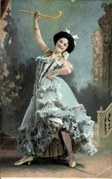 Ak Gemaltes Porträt einer Frau in blauem Kleid, Tänzerin