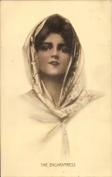 Ak Gemaltes Porträt einer lächelnden Frau, Kopftuch
