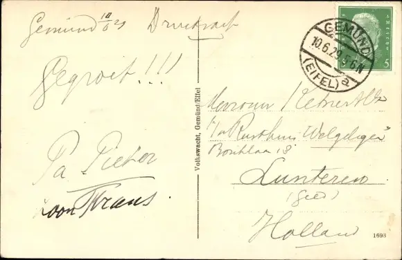 Zustand, siehe Scan, gelaufen, 1929 - ca 14 cm X 9 cm