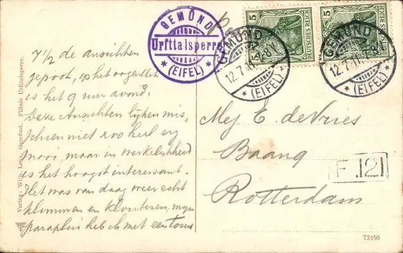 Zustand, siehe Scan, gelaufen, 1911 - ca 14 cm X 9 cm